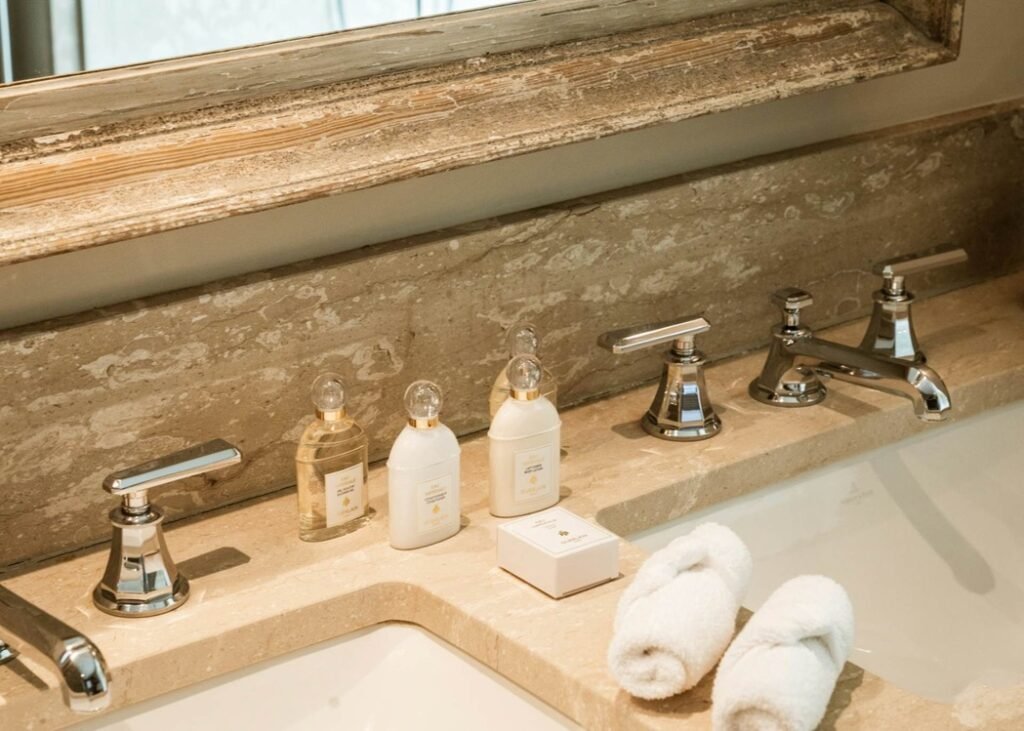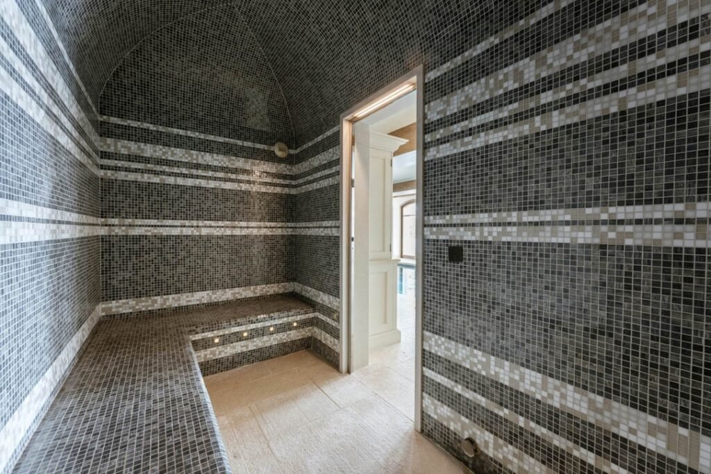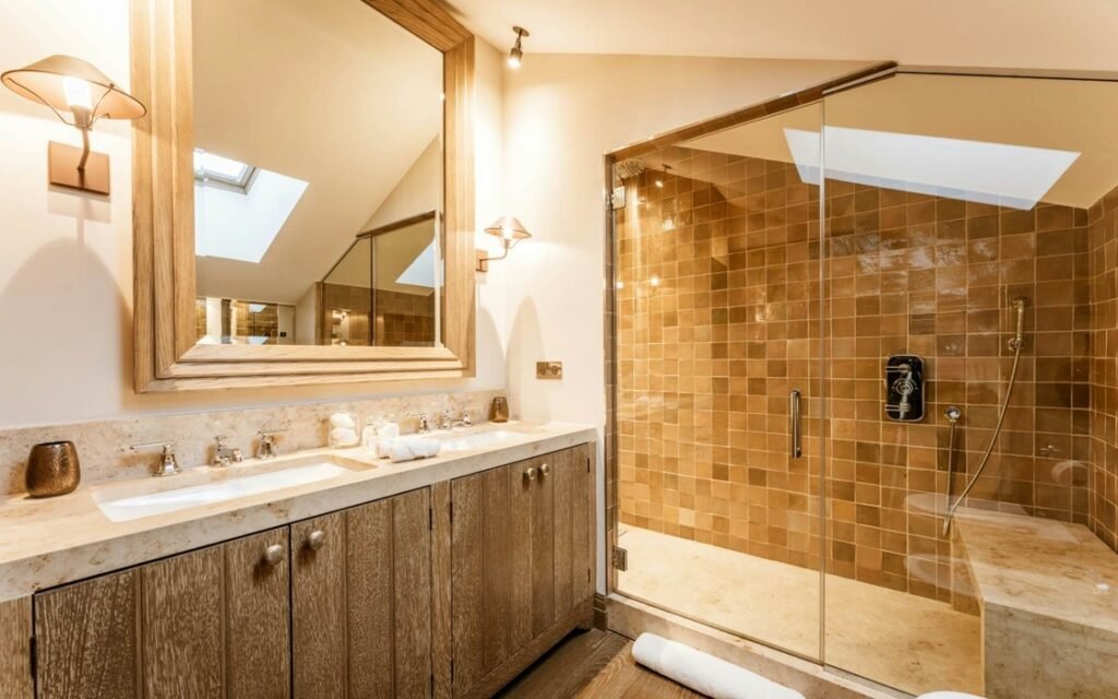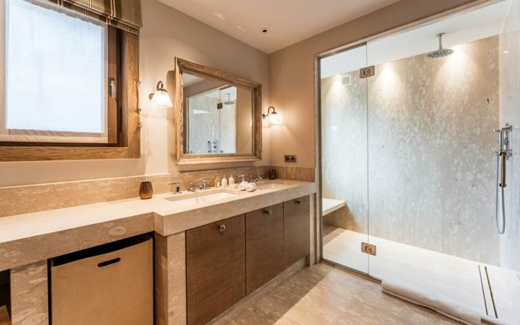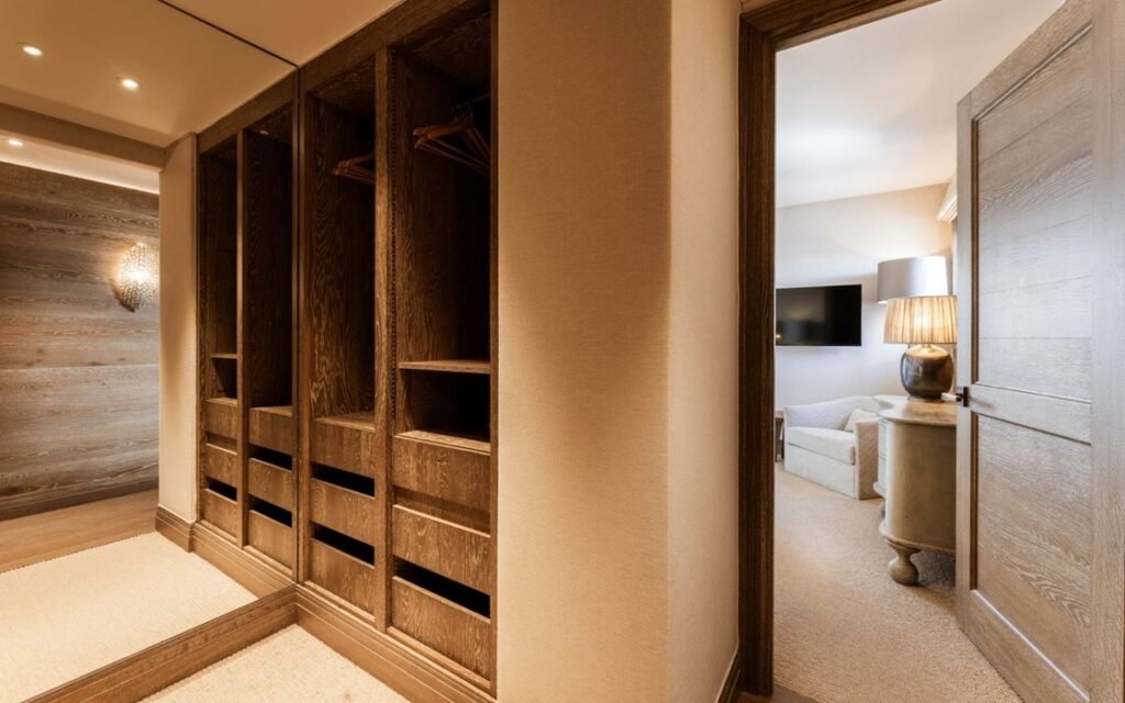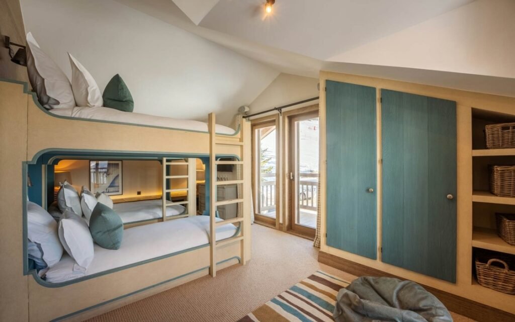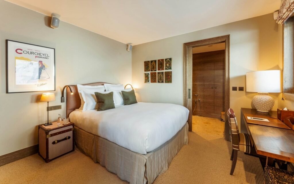 The imposing chalet, nestled on a snowy slope and lined with balconies, offers breathtaking views of the mountains. The interiors are equally lavish, with a ground floor wholly dedicated to well-being, comprising a swimming pool, a jacuzzi, a sauna, a hammam, and a fitness room, all with panoramic views of the surrounding valley.