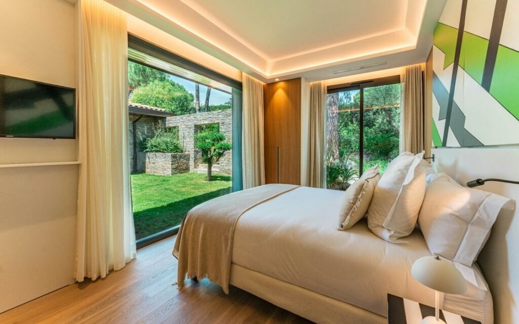 La villa, située à Ramatuelle, offre une proximité exceptionnelle avec les célèbres plages de Pampelonne, accessibles à quelques minutes à pied, et se trouve à seulement 3 km du centre animé de Saint-Tropez. Cette construction moderne, achevée en 2024, est un exemple remarquable de design contemporain et de luxe.