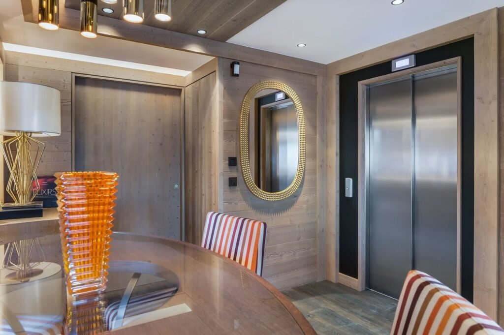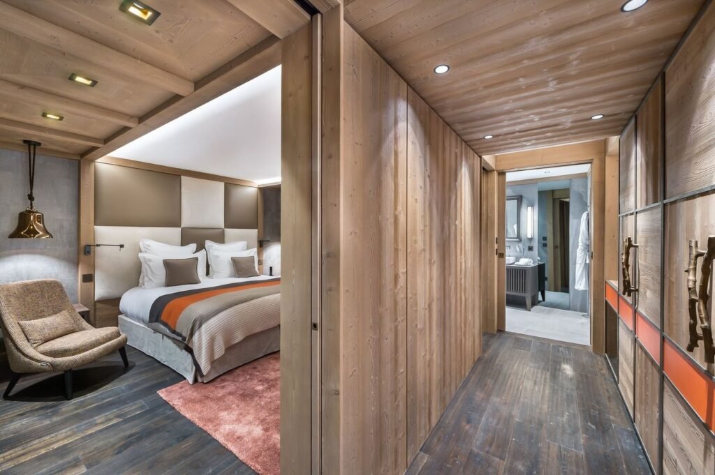 Découvrez le Chalet à Courchevel 1850, un chef-d’œuvre architectural signé Jean-Marc Mouchet. Niché dans le quartier prestigieux de Cospillot, à 500 mètres du centre et des pistes de ski, ce chalet de luxe de 717 m² sur 5 niveaux offre six chambres spacieuses pour 10 adultes et 4 enfants.